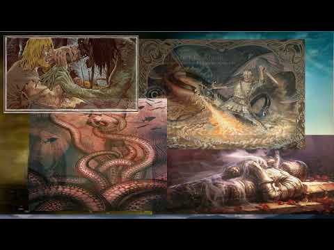 В Дании некогда правил король из славного рода Скильдингов по имени Хродгар. Он был особенно удачлив в войнах с соседями и, накопив большие богатства, решил увековечить память о себе и своём правлении. Он надумал выстроить великолепную пиршественную залу для королевской дружины. Не жалел Хродгар ни сил, ни средств на постройку, и самые искусные мастера выстроили ему залу, равной которой не было на всем белом свете. Как только убранство дивной залы было завершено, Хродгар стал пировать в ней со своими воинами, и вся окрестность оглашалась звоном дорогих кубков и песнями королевских певцов. Но весёлые празднества славного Хродгара длились недолго, недолго лились рекою пенистое пиво и золотистый мёд, недолго звучали весёлые песни... Шум застолий короля Хродгара долетал до логова страшного громадного чудовища Гренделя, обитавшего неподалёку в зловонных болотах. Грендель ненавидел людей, и их веселье возбуждало в нем злобу... И вот однажды ночью это чудовище подкралось неслышно к зале Хродгара, где после долгого буйного пира расположились на отдых беспечные воины... Грендель схватил тридцать витязей и потащил в своё логово. Наутро вопли ужаса сменили клики веселья, и никто не знал, откуда нагрянуло страшное бедствие, куда девались Хродгаровы витязи. После долгих сокрушений и догадок беспечность взяла верх над опасениями и страхами, и Хродrap со своими воинами вновь затеял пиры в дивной зале. И вновь нагрянула беда — чудовищный Грендель стал каждую ночь уносить по нескольку витязей. Скоро все уже догадались, что именно Грендель вторгается ночью в залу и похищает мирно спящих воинов, Никто не отважился вступить в единоборство с диким чудовищем. Хродгар напрасно молил богов, чтобы они помогли ему избавиться от страшной напасти. Пиршества в зале прекратились, смолкло веселье, и только Грендель изредка забирался туда по ночам в поисках добычи, сея вокруг ужас. Слух об этом страшном бедствии дошёл до земли гаутов (в Южной Швеции), где правил достославный король Хигелак. И вот самый знаменитый витязь Хигелака, богатырь Беовульф, заявляет своему повелителю, что хочет помочь королю Хродгару и вступит в борьбу с чудовищным Гренделем. Несмотря на все попытки отговорить его от задуманного, Беовульф снаряжает корабль, выбирает четырнадцать отважнейших воинов из своей дружины и плывёт к берегам Дании. Ободряемый счастливыми предзнаменованиями, Беовульф высаживается на сушу. Тотчас к пришельцам подъезжает береговой сторож, расспрашивает их о цели прибытия и торопится с докладом к королю Хродгару. Беовульф с товарищами тем временем надевают брони, разбирают оружие и по дороге, вымощенной пёстрыми камнями, направляются к пиршественной зале короля Хродгара. И всякий, кто видит приплывших из-за моря воинов, дивится их крепкому сложению, причудливым шлемам, украшенным изображениями вепрей, сверкающим кольчугам и широким мечам, тяжёлым копьям, которые богатыри несут с лёгкостью. Заморскую дружину встречает Вульфгар — один из приближённых короля Хродгара. Расспросив их, он докладывает королю — мол, прибыли важные гости, предводитель называет себя Беовульфом. Хродгару это славное имя известно, он знает, что доблестный Беовульф силою равен тридцати могучим витязям, и король велит скорее звать гостей, надеясь, что с ними пришло и избавление от в