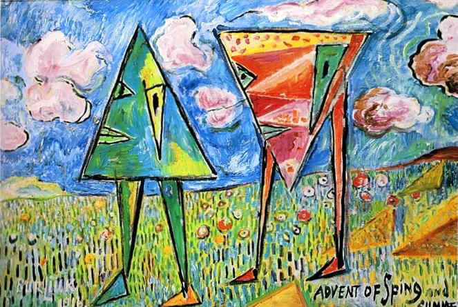 А, к примеру, в «Жатве» и «Потрете песнебойца футуриста Василия Каменского» Бурлюк стал более убедительным. Здесь уже ощущается, что пространство картины живет по своим законам, а не просто нарушает привычные.