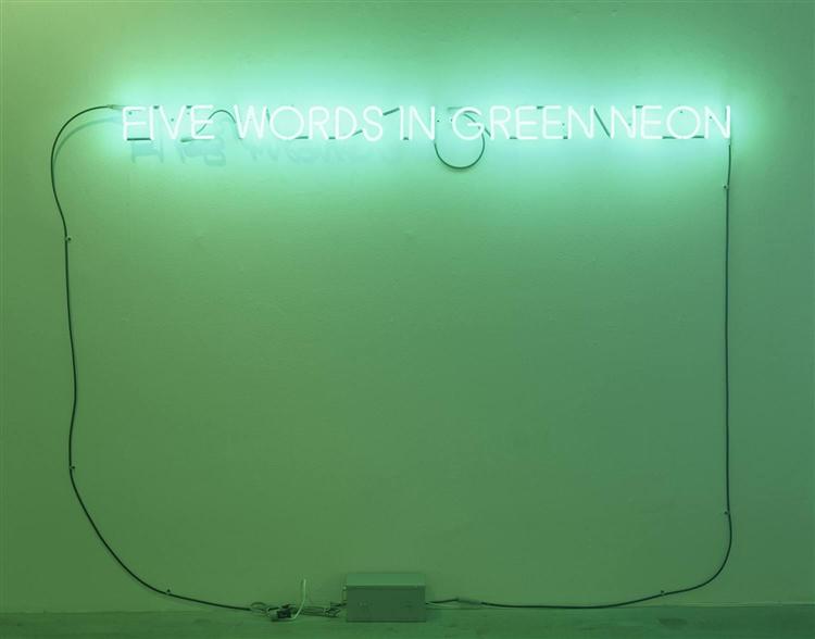 С тех пор он работает с текстом: неоновые надписи, цитаты из книг на стенах, словарные определения. Язык как материал.