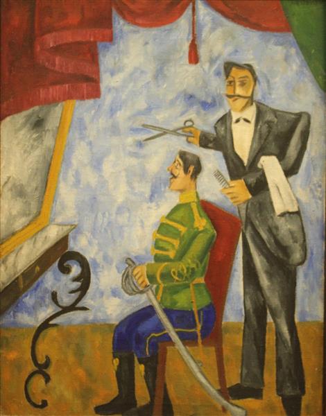 Ларионов провозглашает лучшими учителями создателей вывесок. И действительно, «Парикмахерские» явно ориентированы на зрителя, они нарочито демонстративны. Ларионов не заигрывает с лубком и не улыбается, как вежливый человек, «народу», подразумевая незримое, но явственное «ну, мы же с вами понимаем». Он погружается в этот мир. Собственно, это одна из особенностей неопримитивизма – он ни в коем случае не стилизация, он и есть отображение простонародного взгляда на жизнь. Не «представим на минуточку точку зрения солдата, комфортно расположившись в нашей светской гостиной», а оказываемся возле солдата, становимся им. Некоторые картины мастера приобретает Третьяковская галерея, что считалось безусловным показателем успеха.