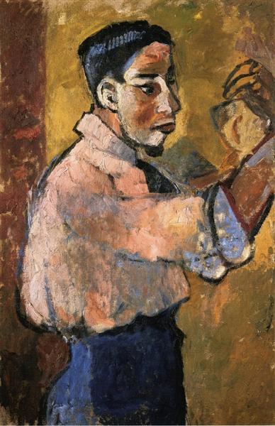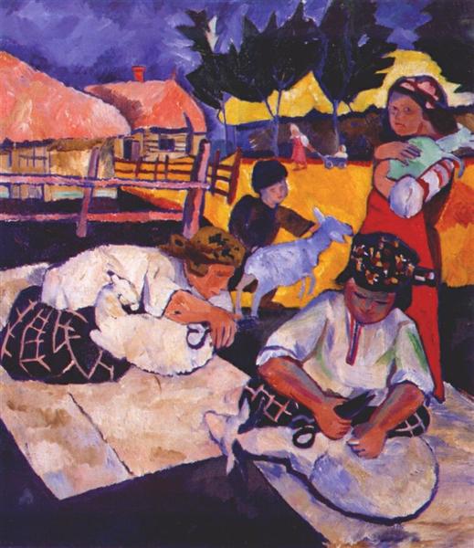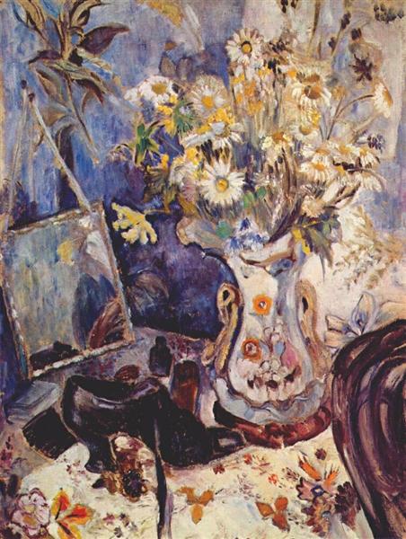 Так всё и началось. Гончарова переходит на курс живописи к Коровину. И пишет – много, безостановочно, ярко. Начинала она с импрессионистических вещей («Сенокос», «Пейзаж в Ладыжино», «Натюрморт с туфелькой и зеркалом»).